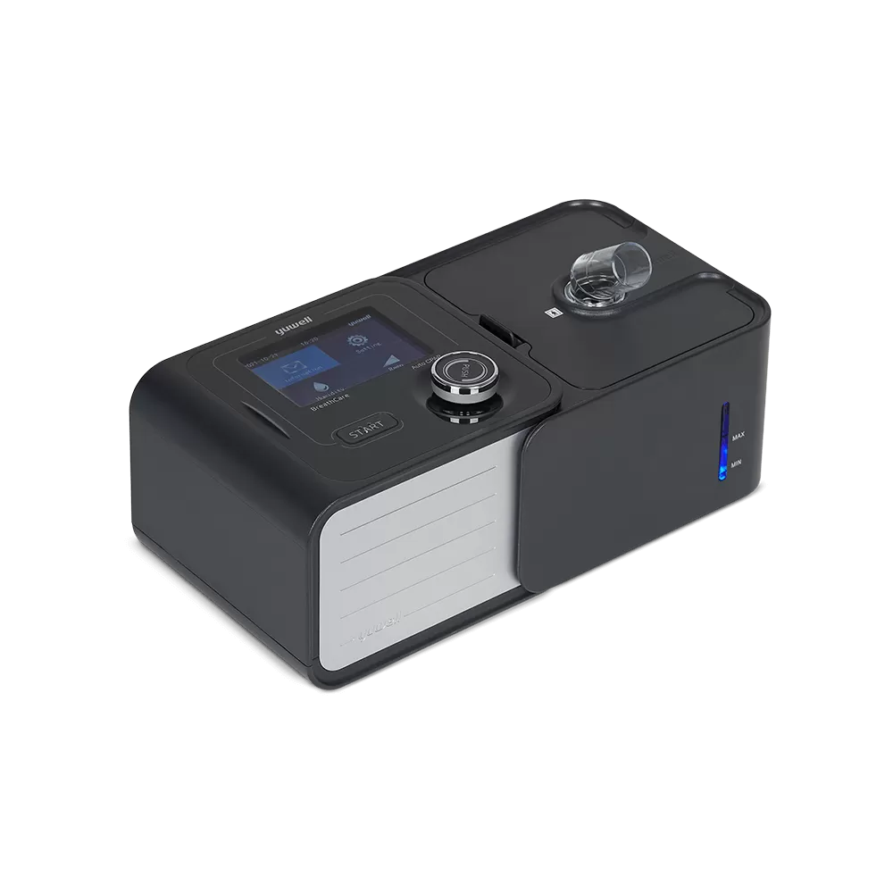 - Понятное управление. На дисплей прибора выводятся все данные о терапии: индекс AHI (соотношение числа случаев апноэ и гипопноэ ко времени сна), длительность предыдущей и текущей терапии, среднее давление и скорость потока во время последнего сеанса и др. Пользователь может задать режим работы, уровень давления и влажности воздуха, включить или выключить подсветку увлажнителя, функцию автовключения и звуковую сигнализацию о неисправностях, настроить время, дату и единицы измерения давления (H2O/гПа). Всё управление осуществляется с помощью одного регулятора.
