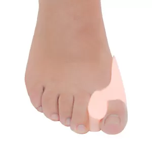 - Благодаря специальной конструкции, межпальцевый разделитель фиксирует большой палец в правильном положении, удерживает его при ходьбе, не позволяя смещаться даже при активных движениях, а защитная накладка исключает сдавливание обувью, снижает давление на область I пальца стопы и под I плюснефаланговым суставом.