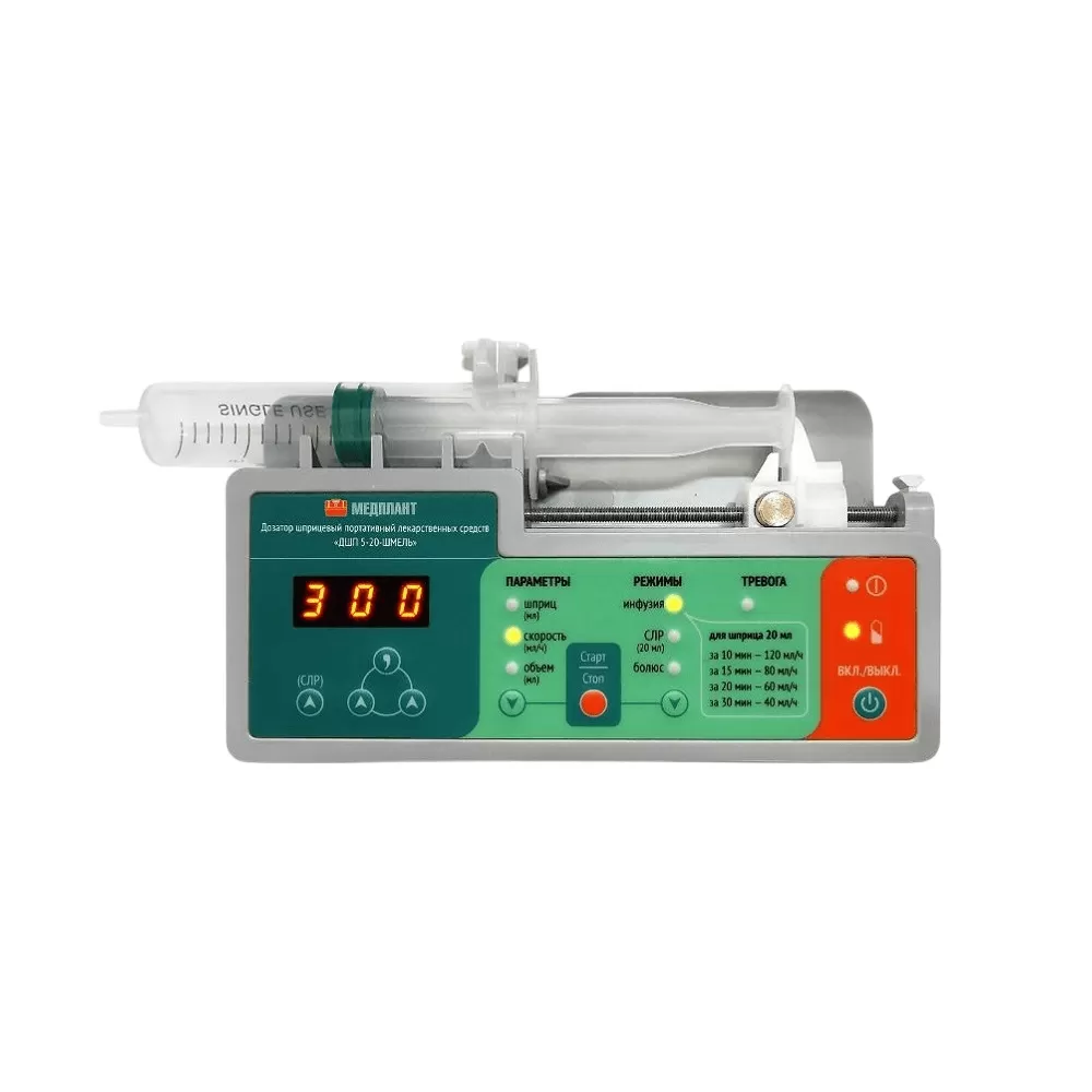 Дозатор шприцевый (насос) предназначен для длительной инфузии препаратов пациенту с заданной скоростью.Преимущества