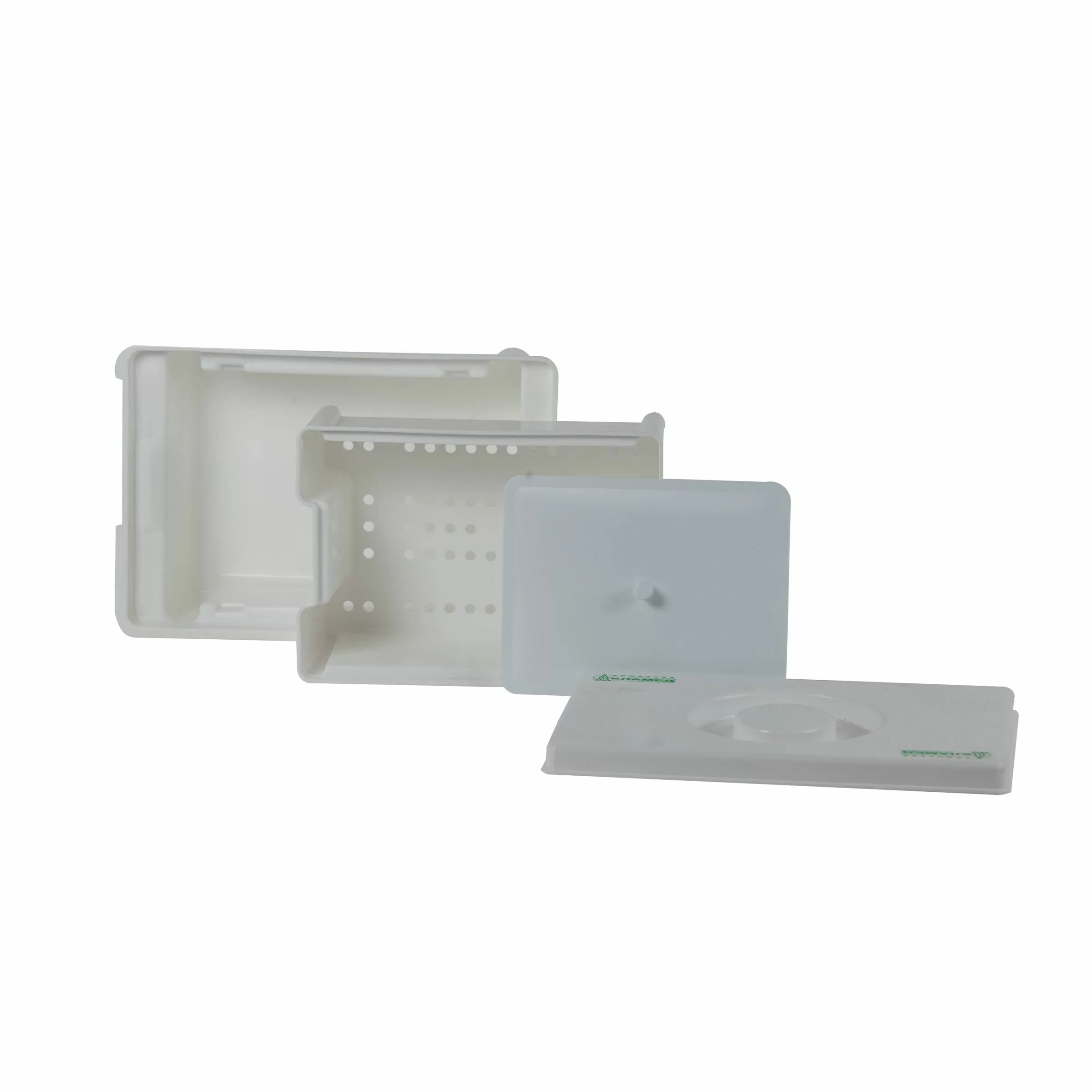Емкость-контейнердолжен состоять из корпуса в виде емкости прямоугольной формы, перфорированного поддона, пластины для погружения в раствор лёгких изделий, крышки и карманов (2 шт.).