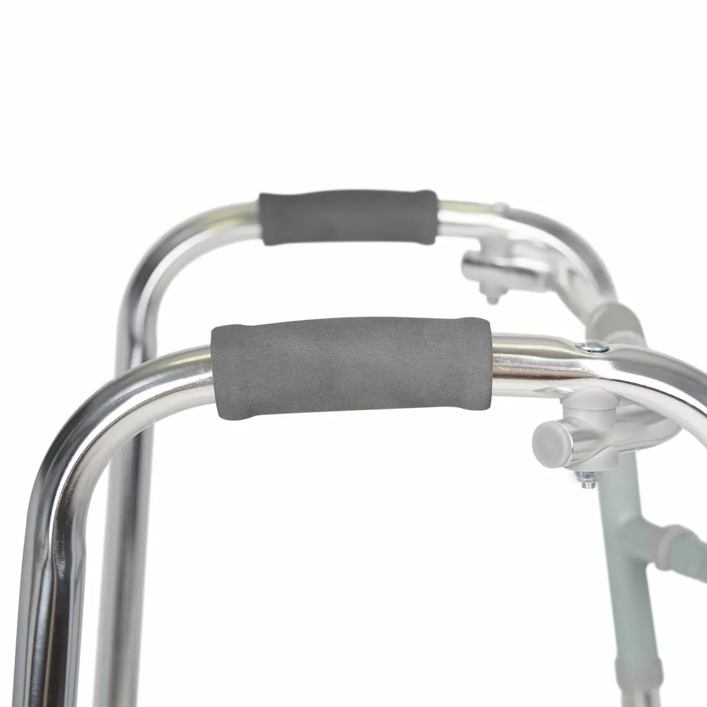 - Исключить риск соскальзывания рук и обеспечить комфортное передвижение с помощью ходунков позволят особые накладки на боковые поручни.