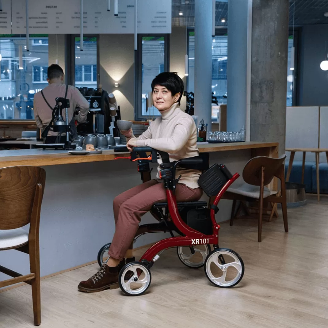 Ходунки Ortonica XR101 с функцией трансформации в кресло-каталку обеспечивают комфортное передвижение, как при самостоятельных прогулках так и с сопровождающим лицом. Ручные двухпозиционные стояночные тормоза обеспечивают мягкое притормаживание в верхнем положении и полную фиксацию в нижнем положении. А откидные подножки и подлокотники, мягкий упор для спины и мягко сиденье делают отдых более удобным за счет возможности использовать ходунки в качестве стула и/или кресла-коляски. Съемная вместительная корзина под сиденьем удобна для транспортировки покупок и личных вещей.Особенности