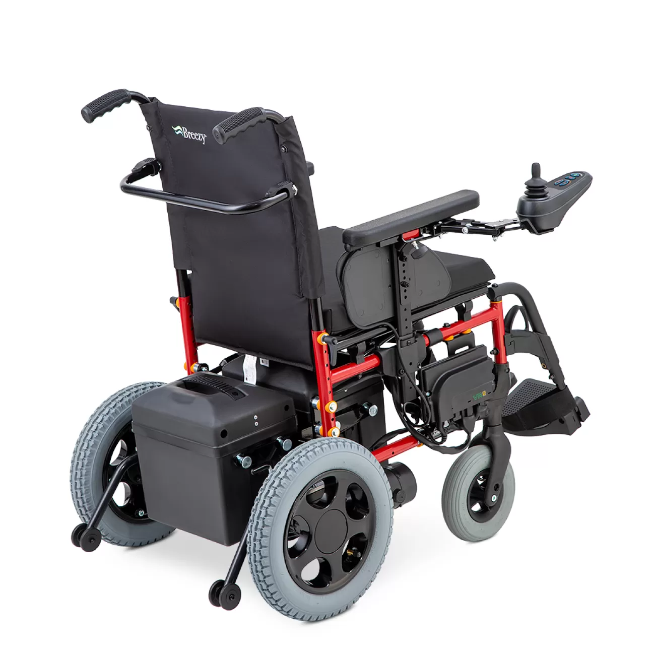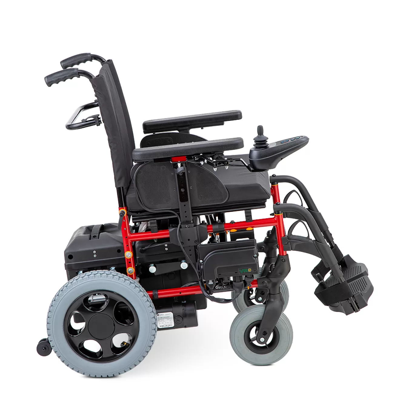 - Коляска оснащена удобным многопозиционным контроллером с чувствительным джойстиком, который обеспечивает плавное управление и маневренность. Джойстик может быть установлен как под левую, так и под правую руку и отводится в сторону для удобного подъезда к столу.