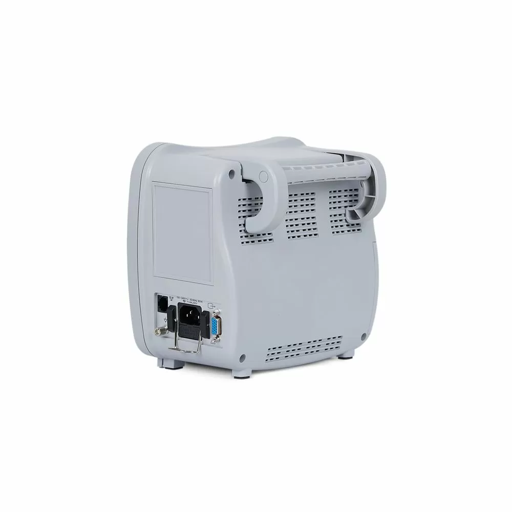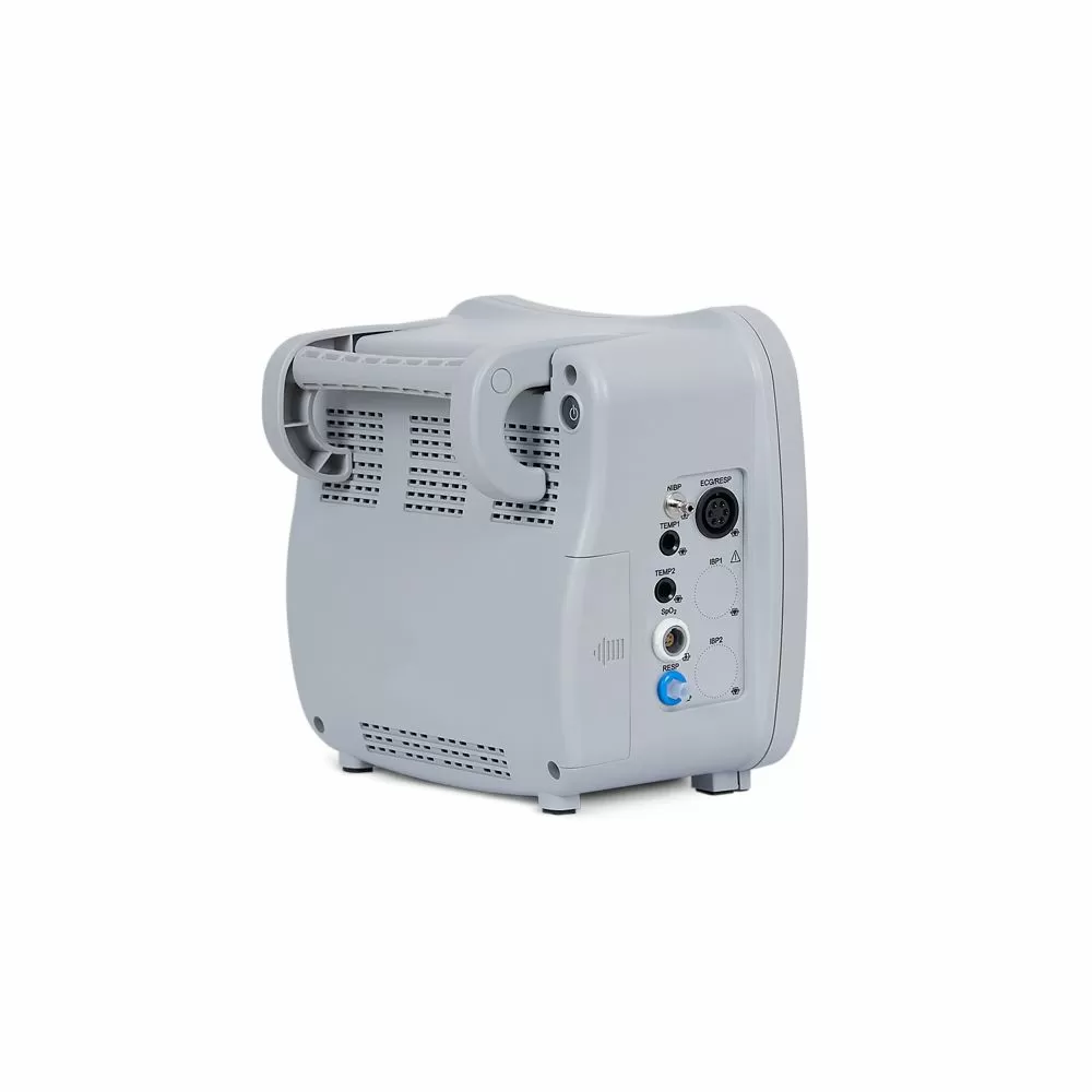 - Монитор измеряет и выводит показатели ЭКГ, ЧСС, NIBP, SpO2, частоты пульса, RESP – респирация (частота дыхания (RR) и дыхание (импеданс или носовая трубка) в виде графика), TEMP – температура.
