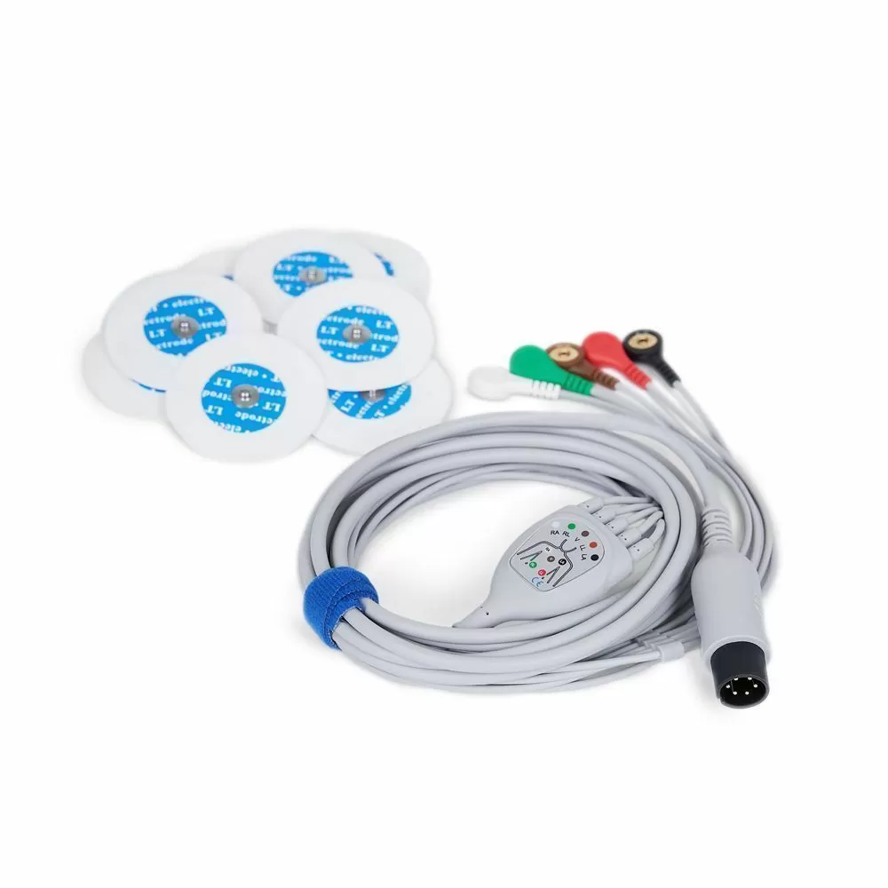 - Монитор принимает кабель ЭКГ с 5 электродами и может одновременно показывать до семи каналов. Имеется два режима регулировки ЭКГ - автоматический и ручной.