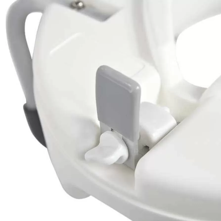 Подходит для унитаза любой формы, устанавливается и фиксируется при помощи трех креплений. Гигиенический пластик легко моется и не впитывает запахи. Большие широкие поручни покрыты мягкими накладками, приятными для соприкосновения с кожей.