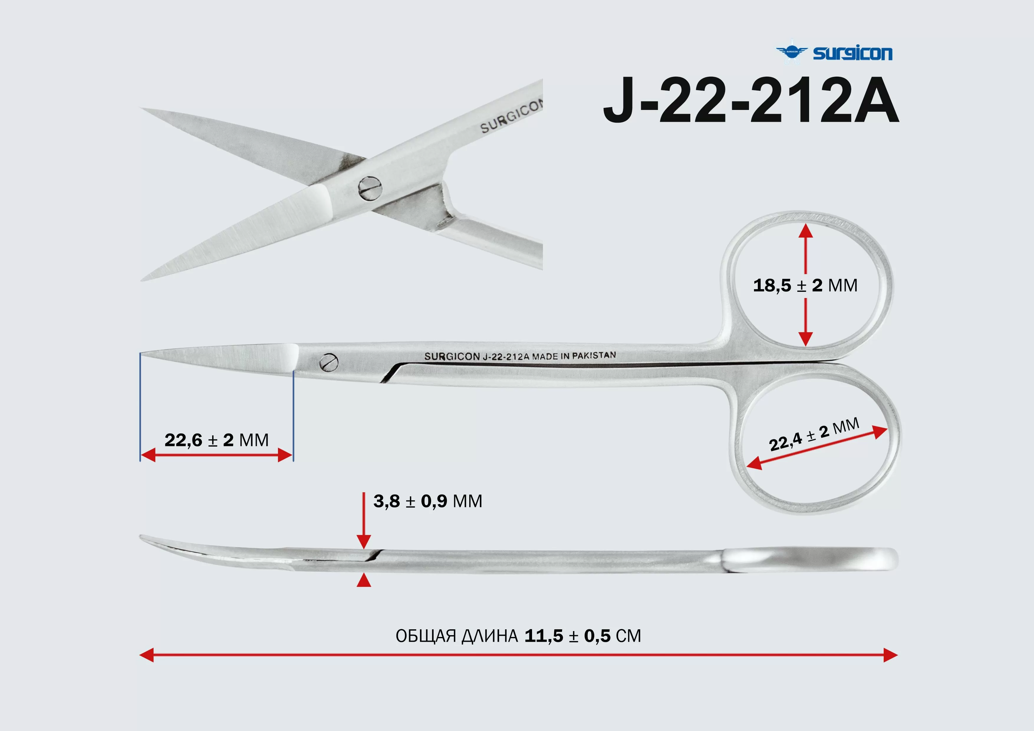 Ножницы глазные вертикально-изогнутые остроконечные