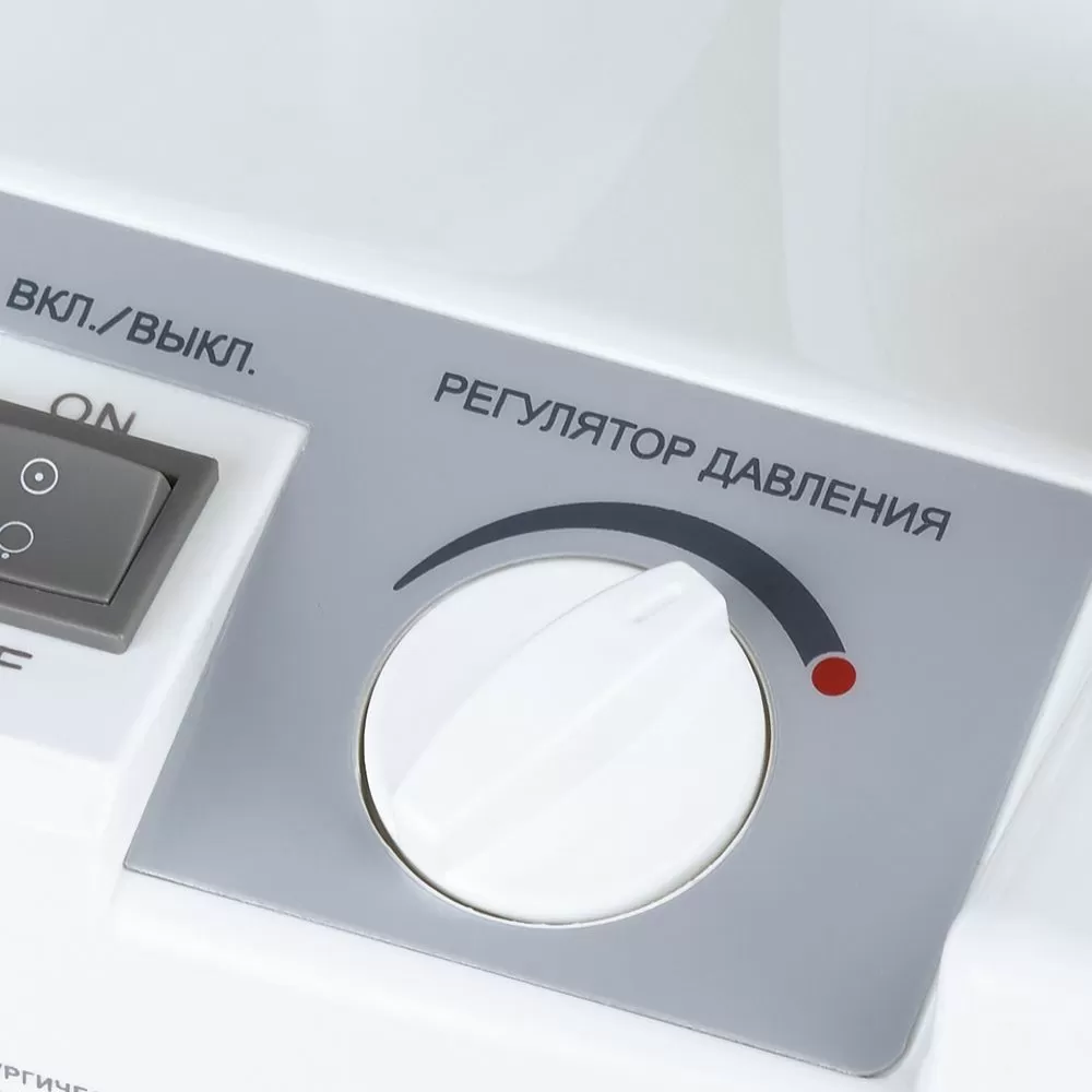 - Скорость забора жидкости настраивается ручкой-регулятором давления, расположенной на лицевой панели. Для включения и выключения прибора достаточно нажатия всего одной кнопки.