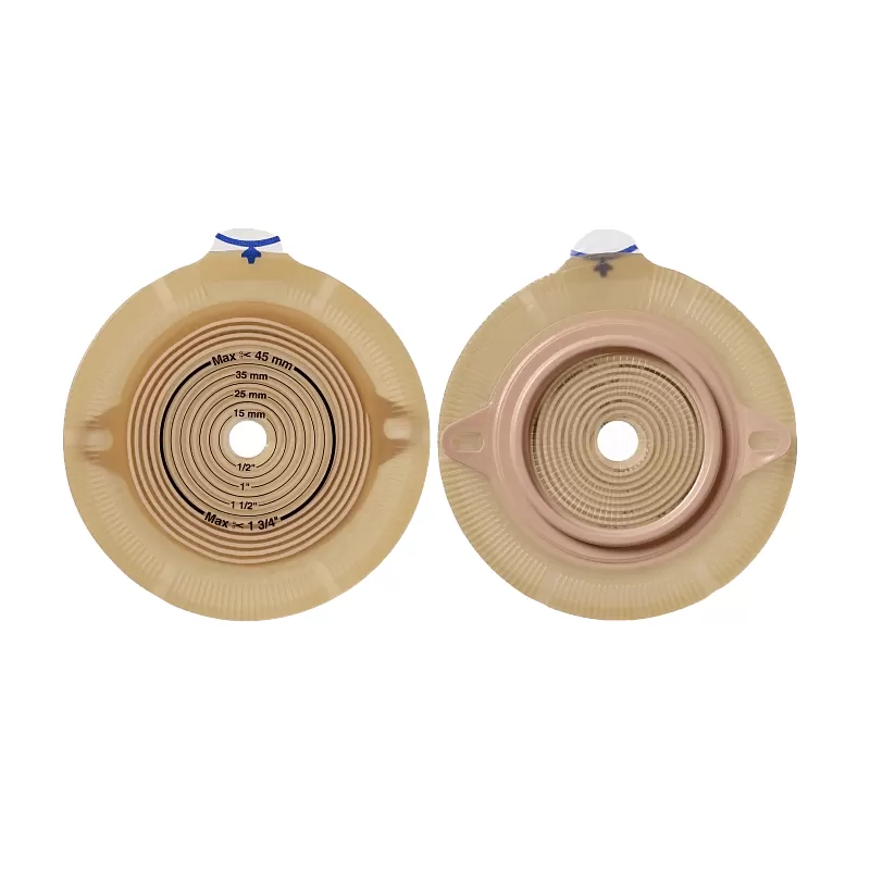 Двухкомпонентные калоприемники Alterna® состоят из клеевых (адгезивных) пластин спиралевидной структуры и стомных мешков.