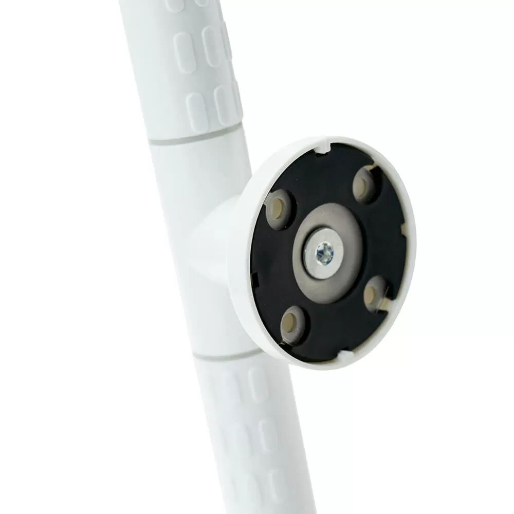 Кронштейны изделия вращаются вокруг своей оси, поэтому поручень может крепиться как на одной плоскости, так и в двух. Кроме того, универсальные соединительные элементы позволяют собирать различные конфигурации поручня – как угловую, так и прямые.