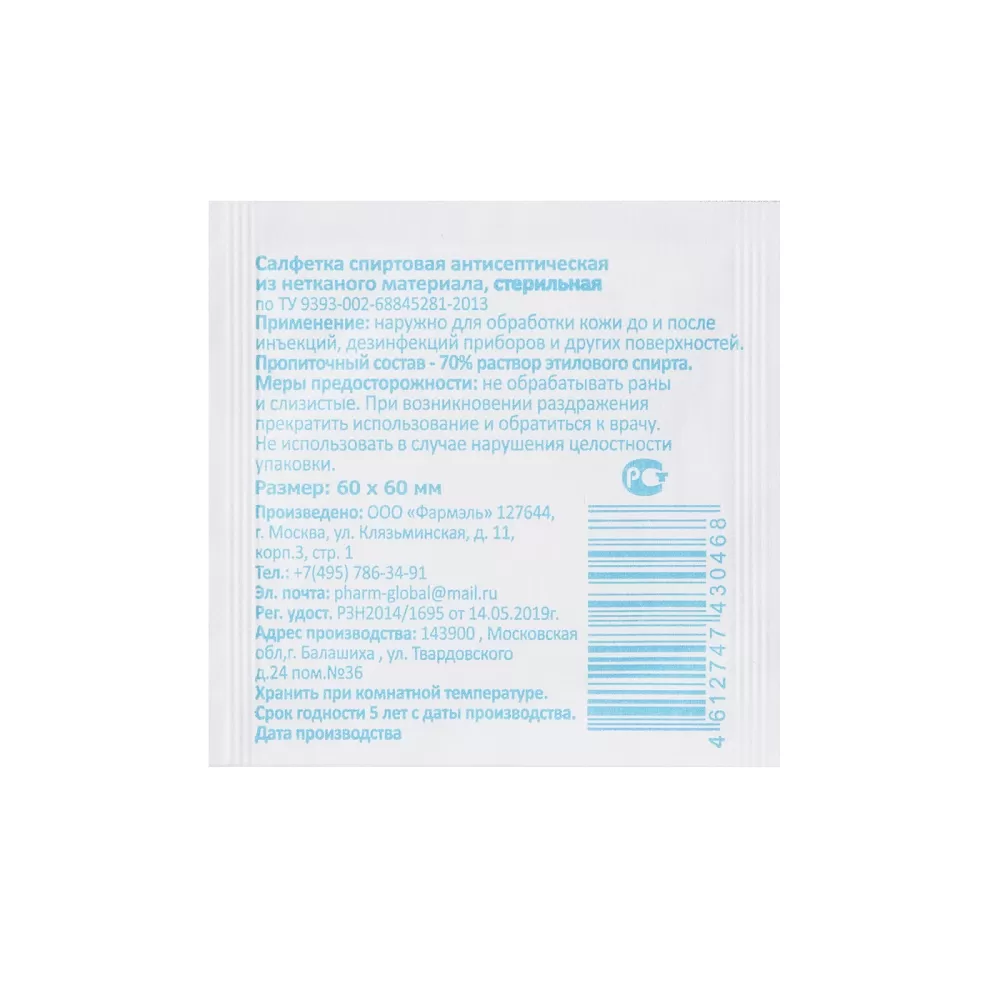 - Салфетка антисептическая для инъекций Фармэль спиртовая 60×60 мм (300 штук в упаковке)