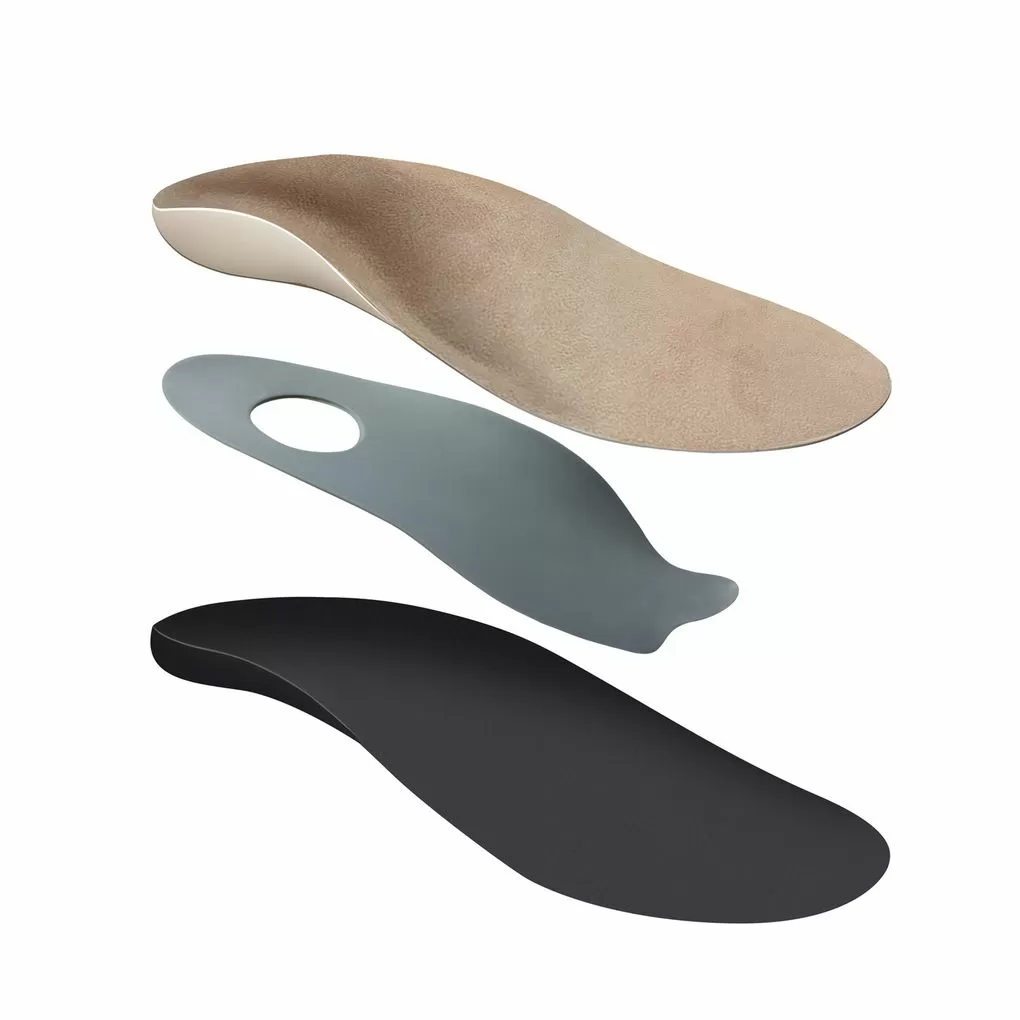 - вкладываются в закрытую обувь с высоким задником, фиксирующими элементами на подъеме (шнурки, велкро, пряжки) и каблуком до 2 см