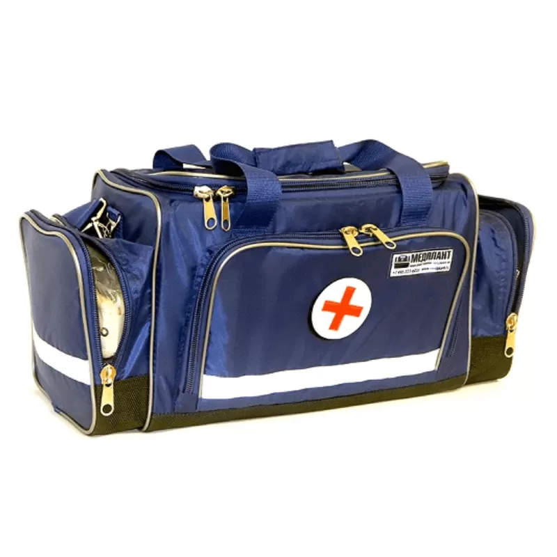 Для размещения вложений сумка имеет 3 кармана, основной отсек и отсек для хранения документов. На внешней части сумки расположен держатель для информационной таблички (для обозначения номера бригады и т.п.) и эмблема красного креста