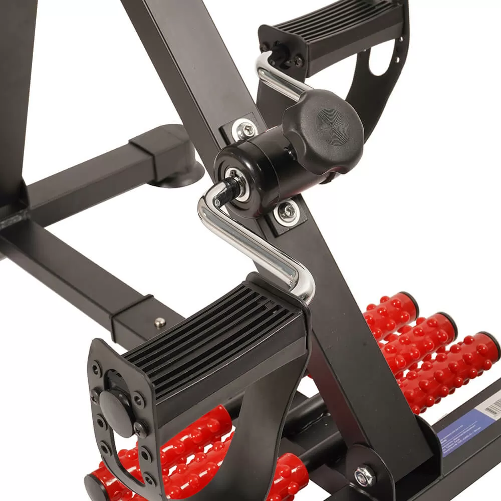 Устройство-трекер позволит отслеживать прогресс пользователя и регулировать нагрузку в течение тренировки. Рукояти и нижняя площадка оборудованы массажной поверхностью, стимулирующей кровообращение пользователя.